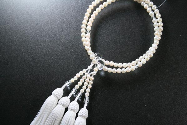 ◆本連女性用数珠◆京念珠ブランド◆ 京都珠数組合加盟店謹製【送料無料/レビュー割有】「二連/本真珠108玉本水晶仕立:正絹松風房白色」【桐箱入り:本式二輪】価格: 49,350円レビュー評価: 0.0 レビュー数:0 主珠108玉の本来のお数珠が持つべき正式な玉数を使ったのお数珠です。【水晶と本真珠(パール)の女性用数珠】本真珠に水の精を宿すといわれ、幸運を呼ぶ魔除けともされる「水晶」をポイント(6ヶ所)に入れ、上品でしとやかな雰囲気に仕上がりました。房はオーソドックスな頭房の「白色」を用いて、京都の数珠職人がひとつひとつ丁寧に仕立てた高級京念珠です。*時価仕入での一品物ですので仕入れ時の玉の状態や色 目などで値段が変動致します。●主珠:本真珠(あこや貝)5mm玉 道具:本水晶*天然ものですので玉が多少歪な場合もございます。●房:正絹高級松風頭房(白色)●京都珠数製造卸組合加盟店謹製品(大黒屋1年 |